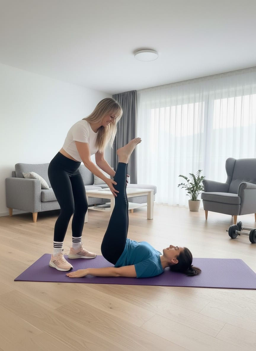 Faites connaissance avec notre spécialiste du Pilates à Lausanne. Selon vos préférences, elle peut intervenir directement chez vous, en extérieur ou vous accueillir dans un espace d’entraînement semi-privé, afin de vous offrir une séance parfaitement adaptée à vos besoins et objectifs.